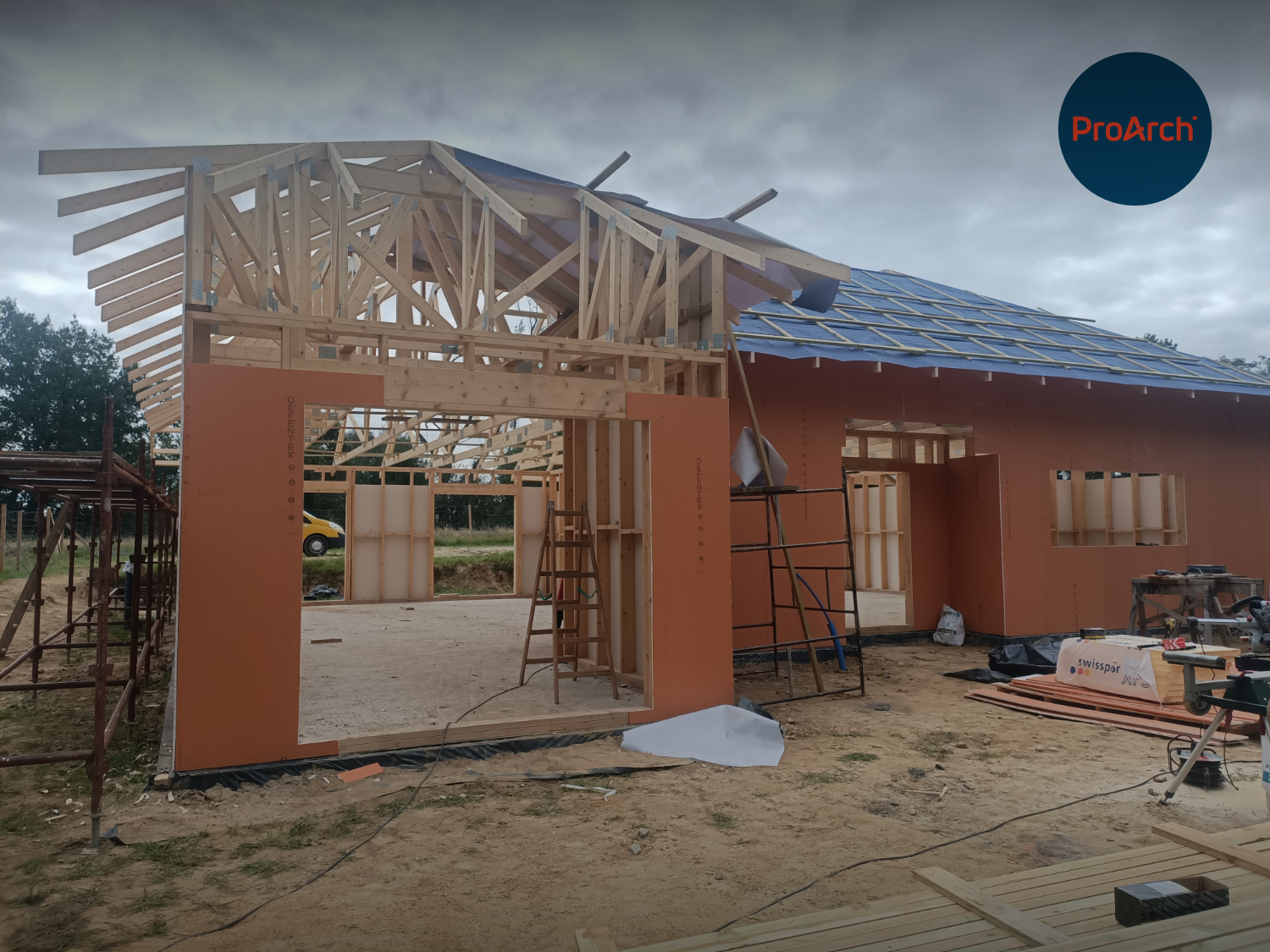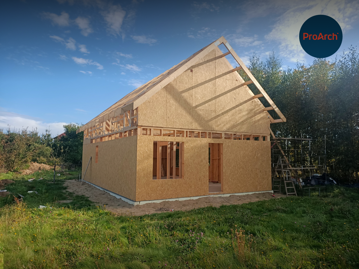 Budynek mieszkalny jednorodzinny o powierzchni ok. 110 m2 powstaje w okolicy Wolina. Projekt powstał w 2021 roku. Ze względu na Covid-19 inwestor przełożył budowę o 2 lata. W lipcu 2023 roku rozpoczęliśmy prace które właśnie teraz (30.X.2023 r.) dobiegają do końca.
