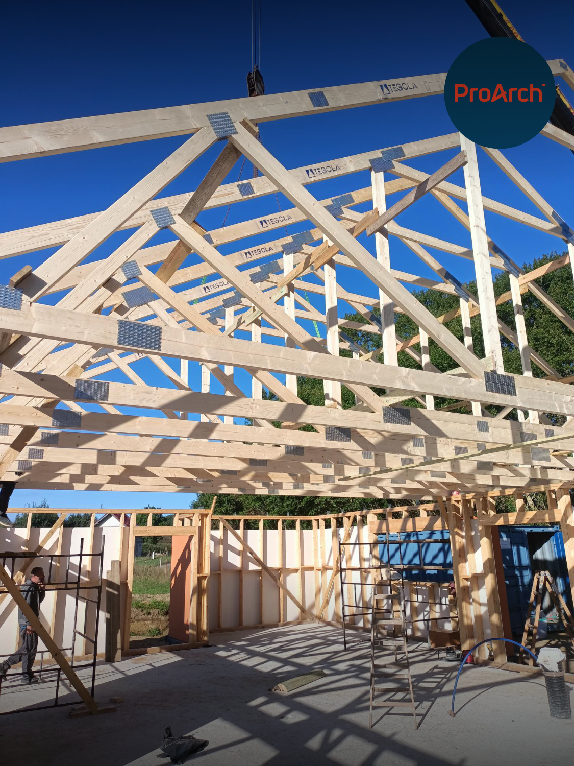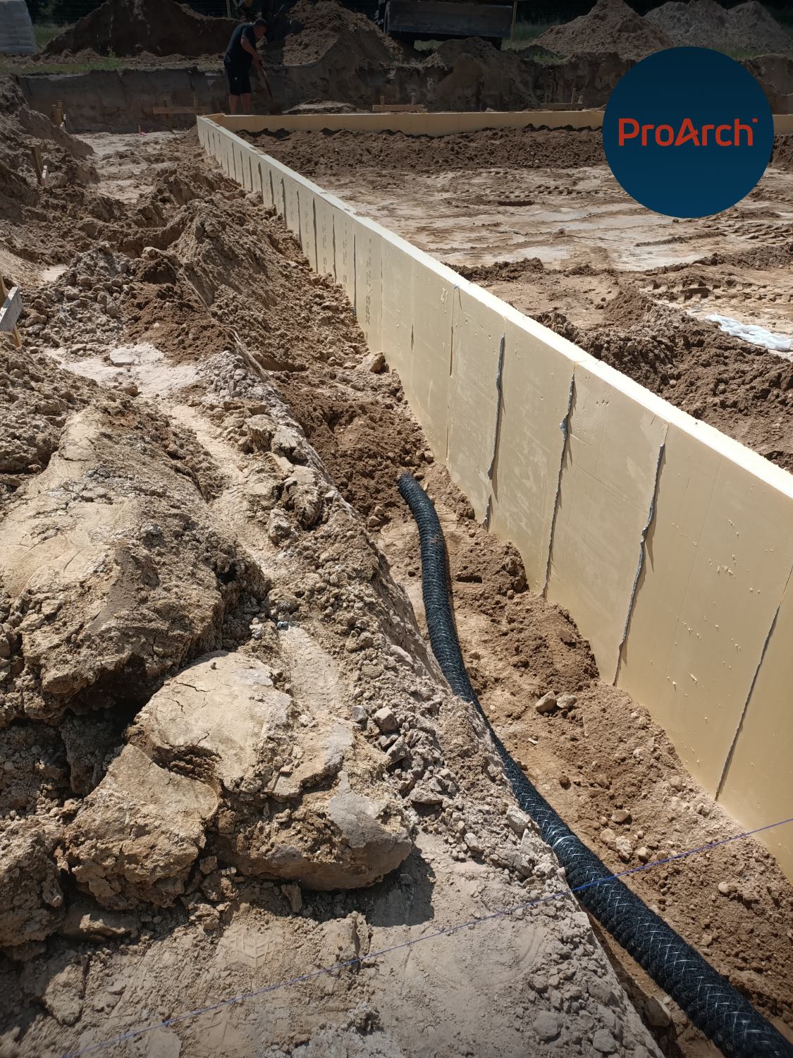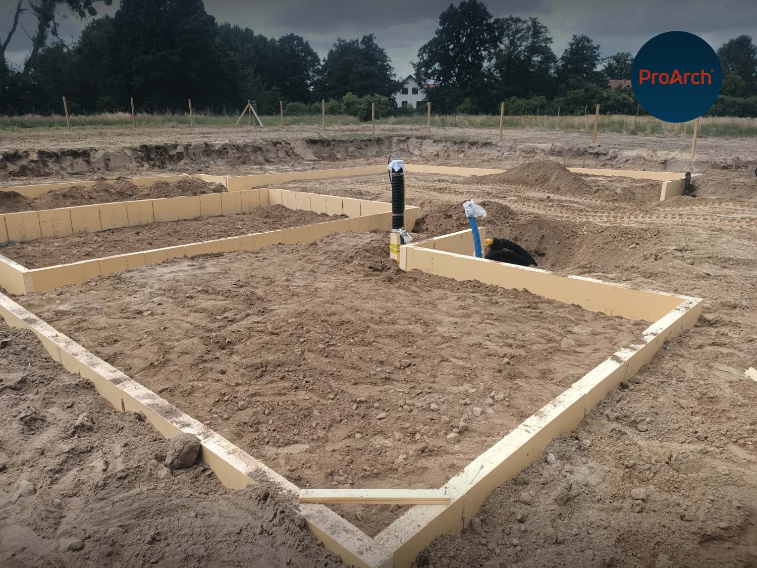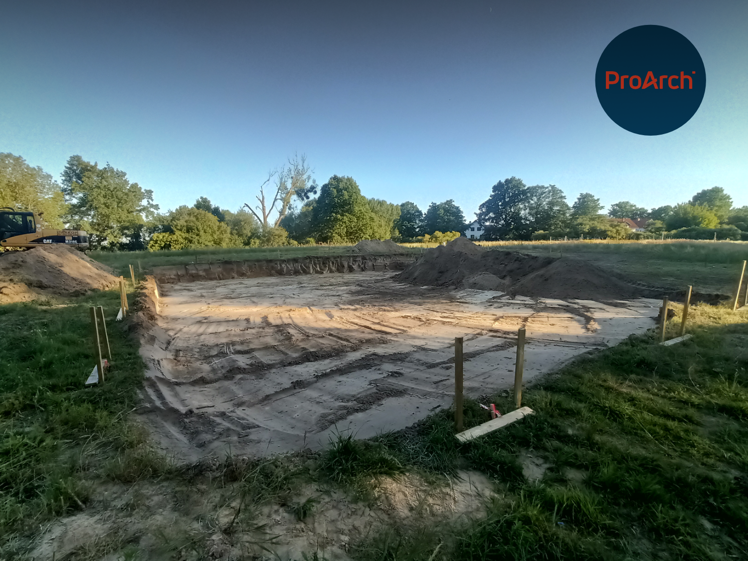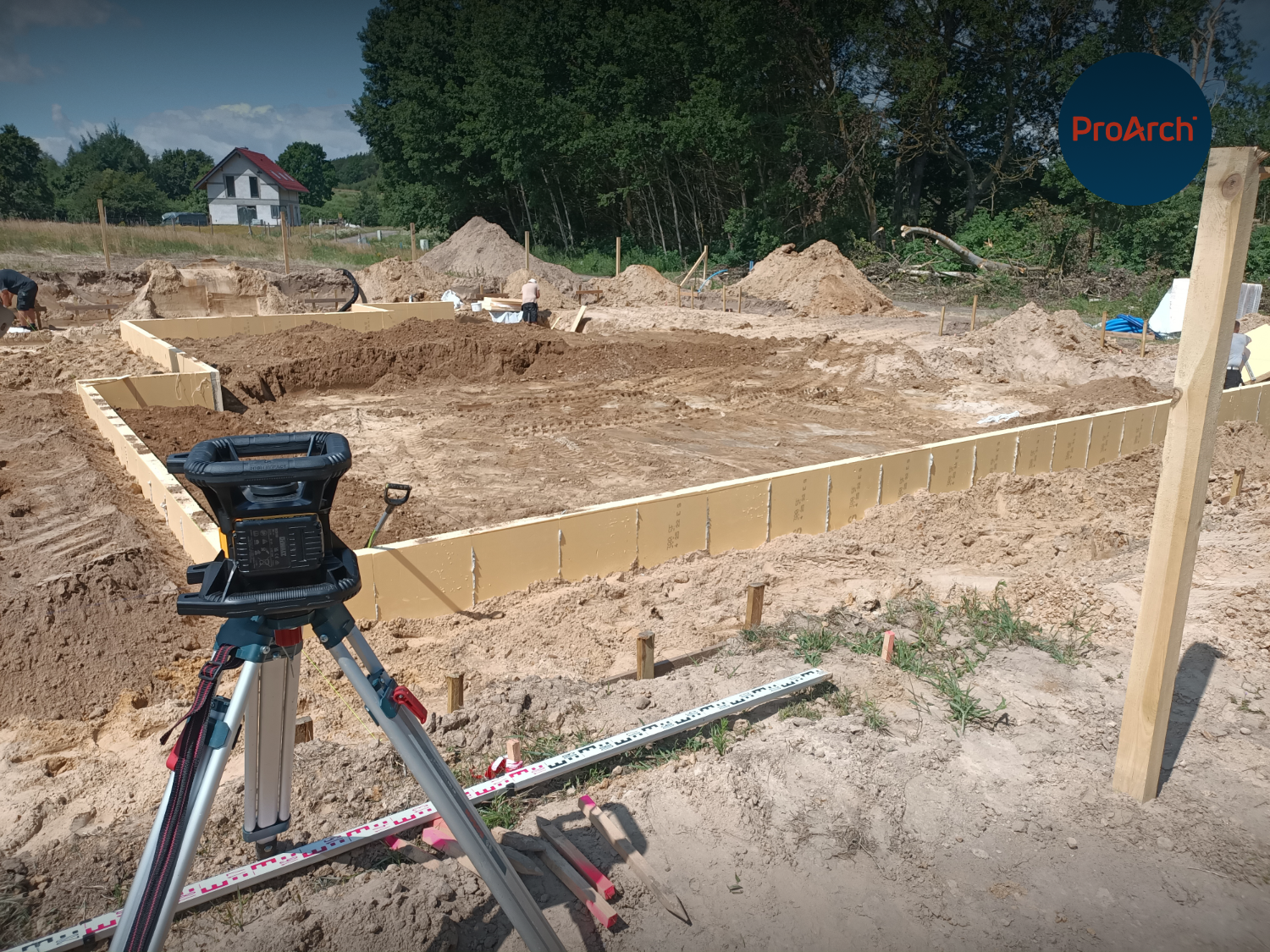 Jesteśmy w trakcie budowy domu parterowego o powierzchni ok 160 m2 z dachem wielospadowym. inwestor zastosował ciekawe rozwiązanie techniczne z wymiennikiem ciepła rekuperatora pod płytą fundamentową. Precyzyjnie przygotowaliśmy prace ziemne pod wymiennik. Konstrukcja jest już postawiona, teraz czas na pokrycie dachu i okna.